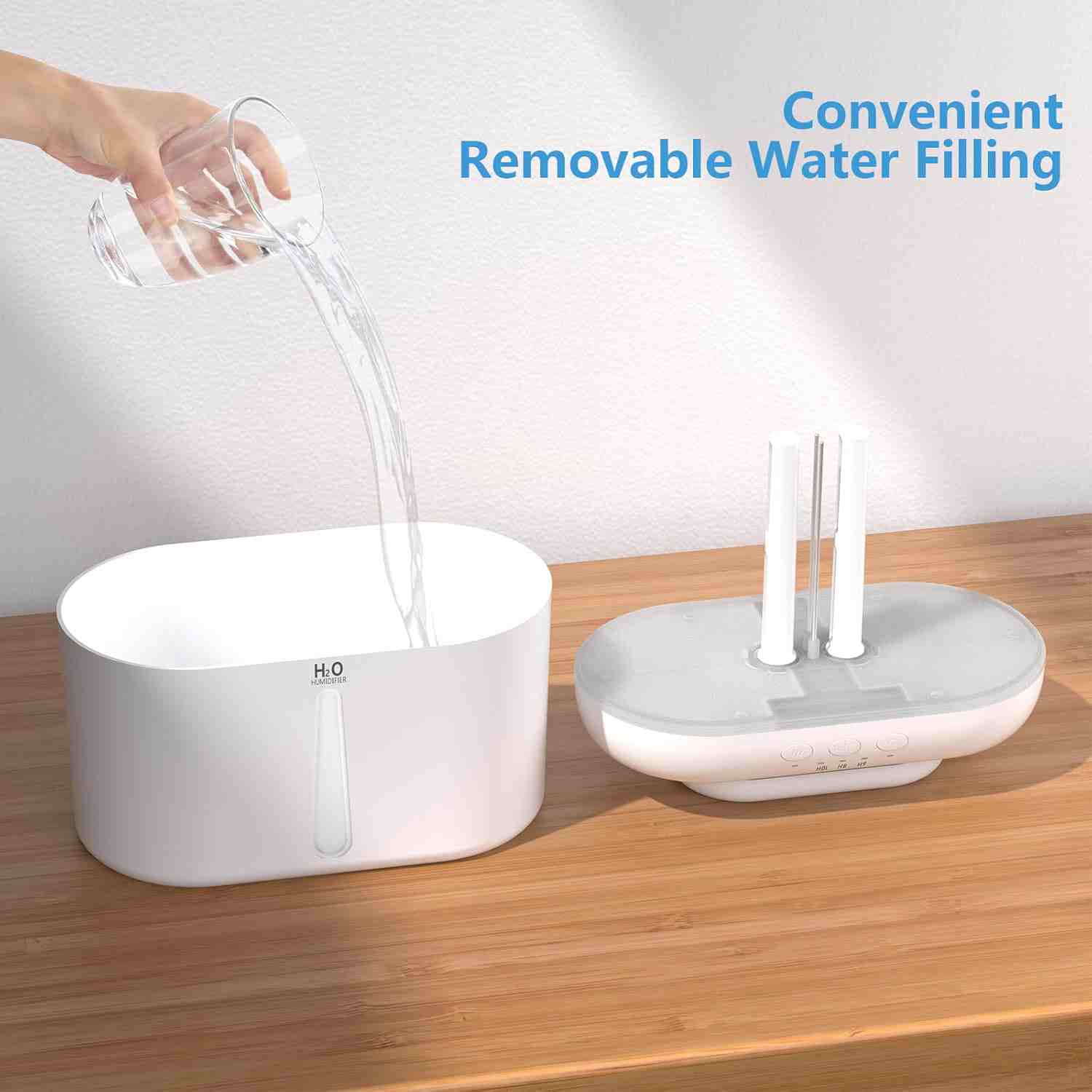 2L tank with top-fill design provides up to 24 hours of continuous humidity and easy, mess-free refilling and cleaning.