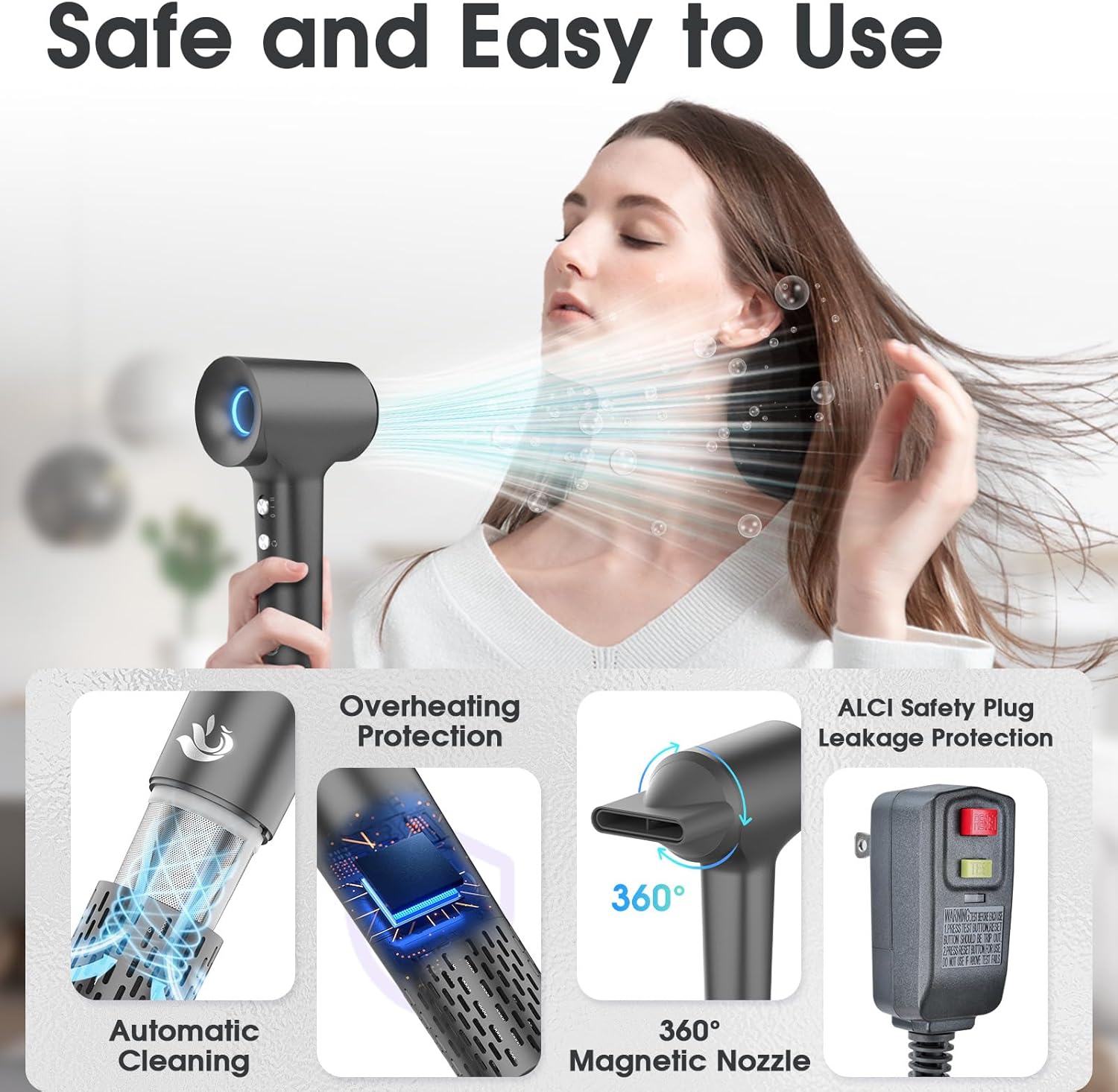 KARFUN Hair Dryer, 110000 RPM High-Speed Brushless Motor Fast Drying Blow Dryer, 57dB Low Noise Hair Dryer for Home or Travel, 3 Temps & 2 Speeds