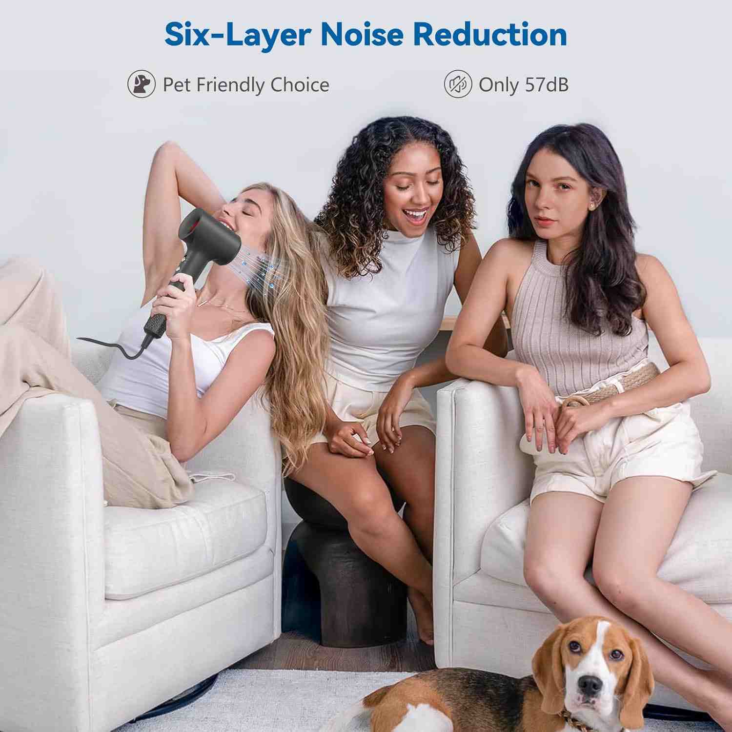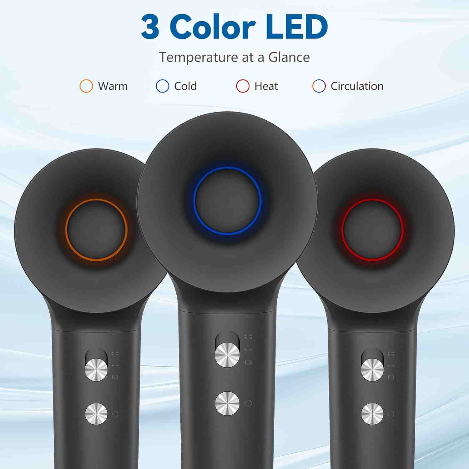 110,000 RPM brushless motor with 22 m/s airflow dries hair 5× faster than conventional dryers. Intelligent thermal control keeps temperature at 52°C to prevent heat damage.