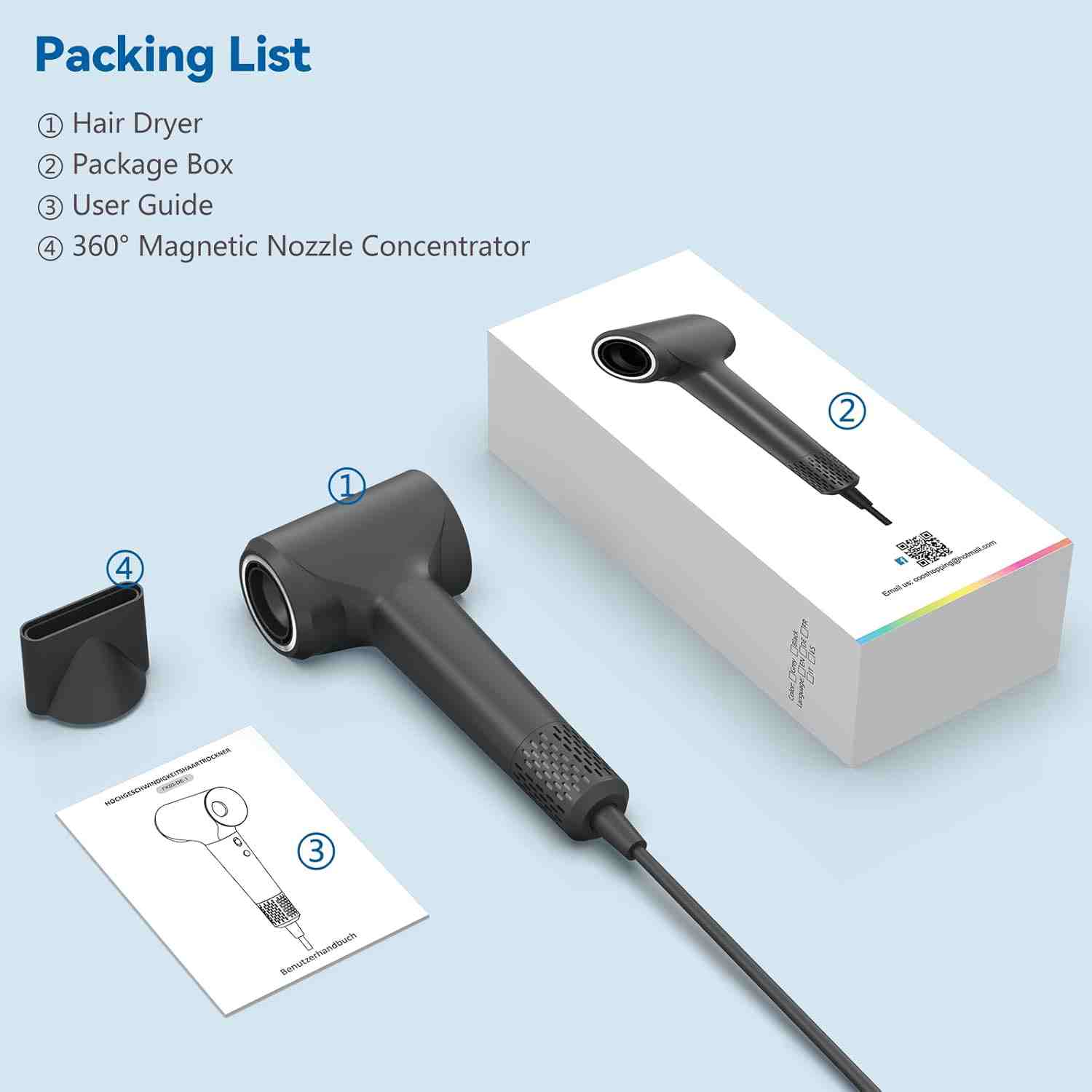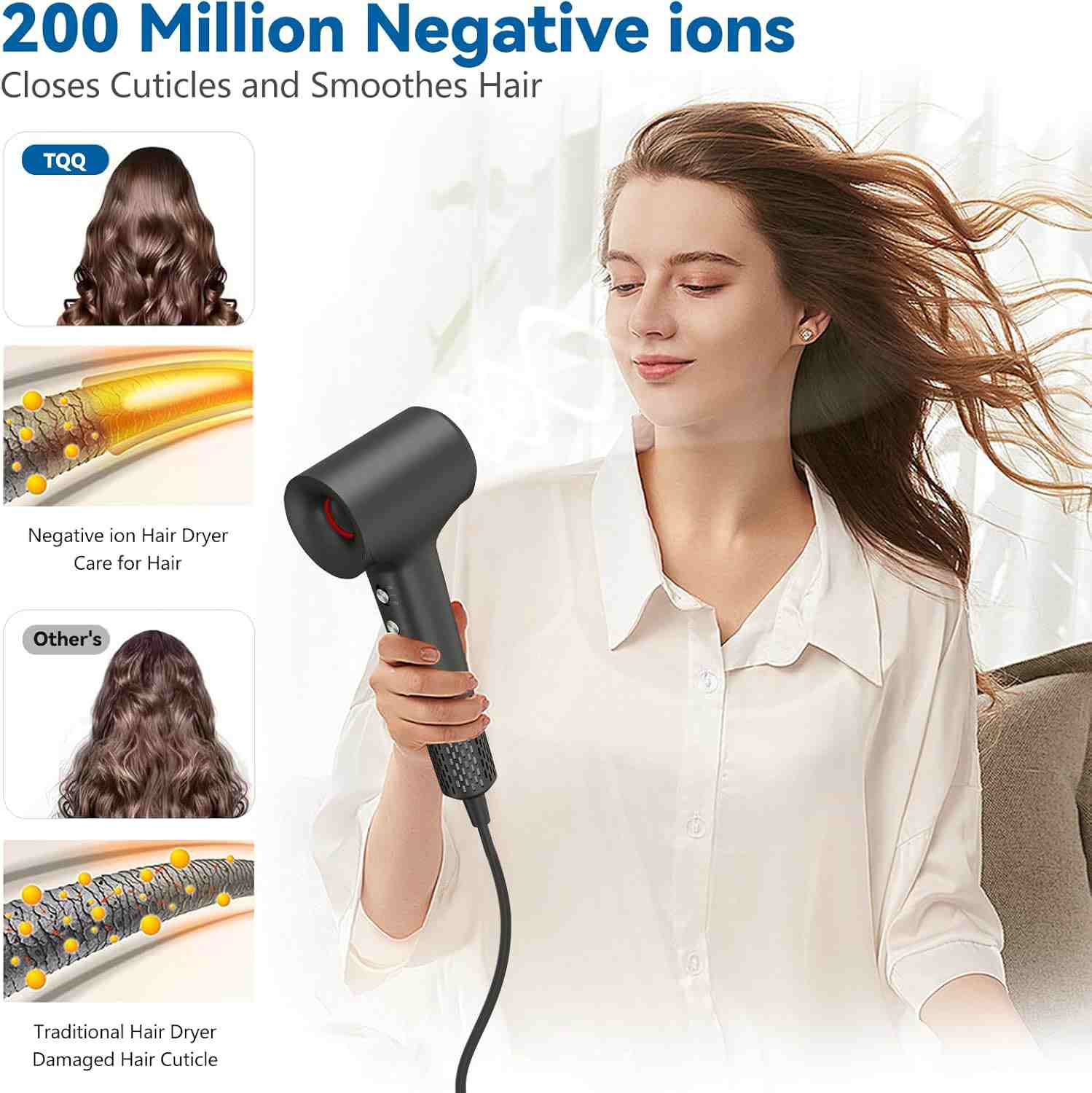 TQQ Hair Dryer, 200 Million Negative Ion Hair Dryer, 110,000 rpm, Brushless Motor, Quick Drying Hair Dryer, 57 dB Low Noise Hair Dryer for Home, Travel